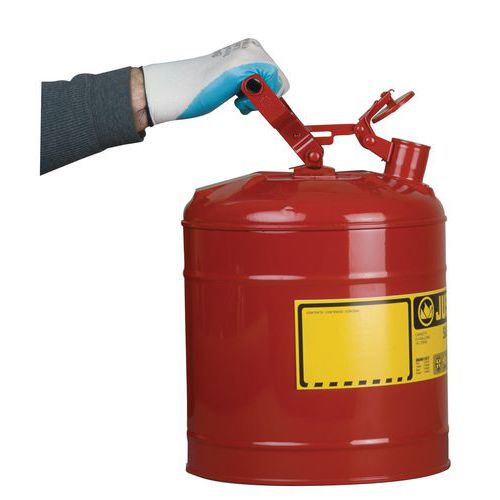 - Automatycznie zamykane pojemniki ochronne z wysokiej jakości stali obniżają ryzyko wycieku cieczy łatwopalnych.
