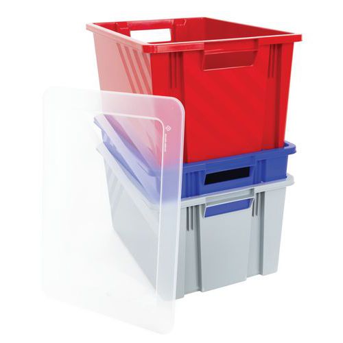 Pojemnik z możliwością sztaplowania i uchwytami ułatwiającymi obsługę. Wysoka odporność na wpływy mechaniczne i chemiczne. Możliwość układania jeden na drugim. Wzmocnione ściany dla większej wytrzymałości.