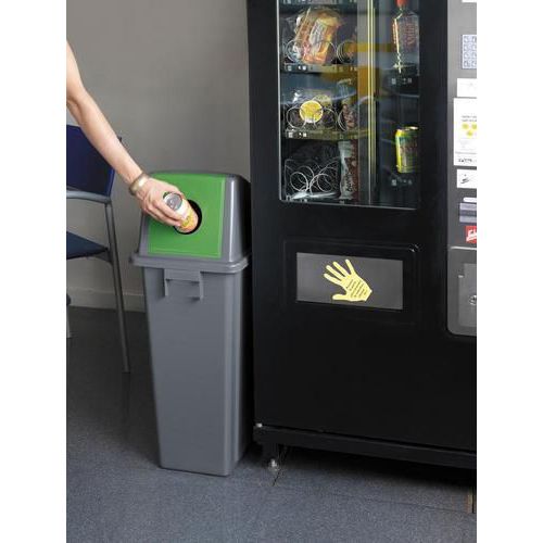 Wysokie pokrywy do koszy na śmieci Manutan Expert o pojemności 60 i 80 litrów. Różne kolory pokryw i otworów wrzutowych.