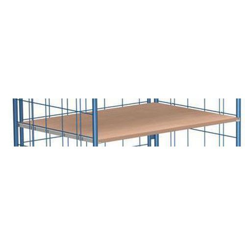 Dodatkowa półka do wózków regałowych z wzorem bukowym lub szarym. Płyty pilśniowe MDF: MDF wykonuje się z włókien drzewnych (głównie świerkowych), łączonych za pomocą kleju syntetycznego przy zastosowaniu wysokiej temperatury i dużego nacisku. Wszystkie parametry są zgodne z normami EN 622-1 i EN 622-5. Nośność (kg) : 80