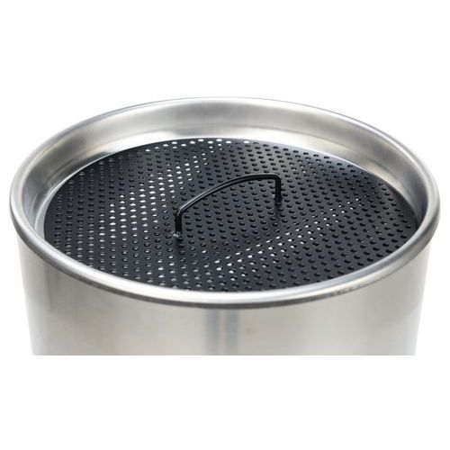 Wolno stojąca popielnica z metalowym sitem. Miska na piasek o pojemności 2 l do gaszenia papierosów. Uchwyt ułatwiający wyciąganie i opróżnianie pojemnika. Nadaje się do umieszczania w zadaszonych obszarach zewnętrznych.