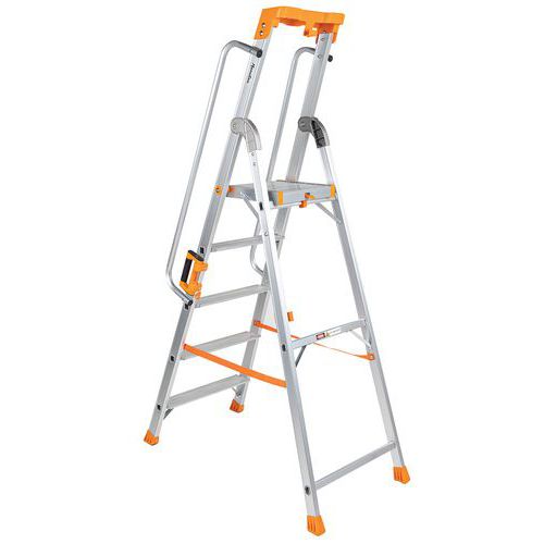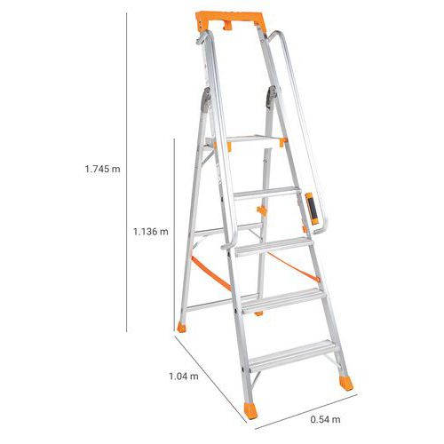 Profesjonalna drabina aluminiowa z platformą Manutan Expert, 5 stopni Profesjonalna drabina aluminiowa z platformą Manutan Expert, 5 stopni
