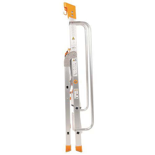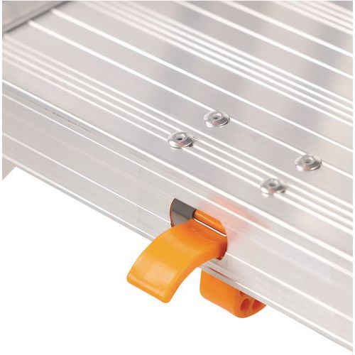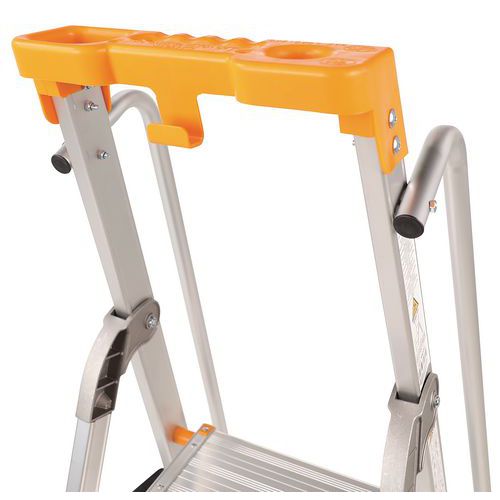 Profesjonalne drabiny aluminiowe. Zawiera wielofunkcyjną plastikową półkę z haczykiem na narzędzia. Poręcze po obu stronach dla zwiększenia bezpieczeństwa. Wzmocniona aluminiowa rama. Antypoślizgowe stopki. Łatwa do przenoszenia i przechowywania.