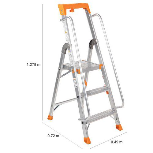 Profesjonalne stopnie aluminiowe z uchwytami Manutan Expert, 3 stopnie Profesjonalne stopnie aluminiowe z uchwytami Manutan Expert, 3 stopnie