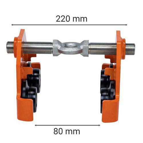Ręczne mechanizmy posuwu o nośności 500 – 2000 kg. Służą do łatwego umieszczania i manipulacji większymi ładunkami. Nadają się do wszystkich belek typu IPE i IPN. Kółka jezdne z łożyskami kulkowymi. Szerokość rozstawu 50–305 mm. Łatwy montaż i regulacja.