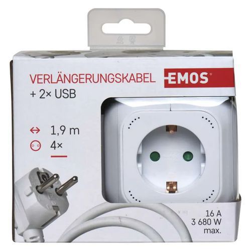 | Nazwa produktu | Przedłużacz – kostka z USB, 1,9 m, 4 gniazda, biały |