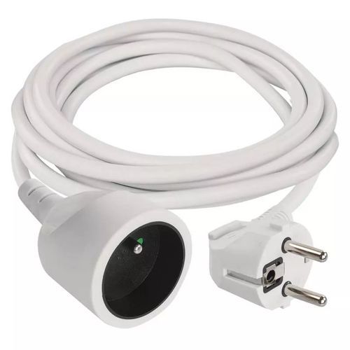 - Biały przedłużacz zapewnia dostęp prądu poza zasięgiem gniazda stałego.