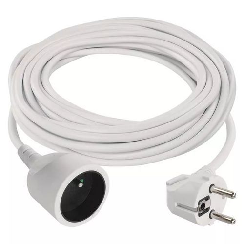 - Biały przedłużacz zapewnia dostęp prądu poza zasięgiem gniazda stałego.