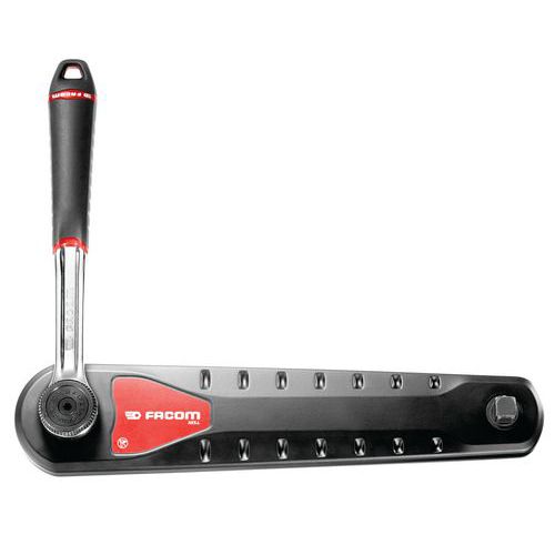 Przedłużenie do grzechotek przegubowych. Zaprojektowane tak, aby odsuwać się od osi dokręcania. Użytkownik ma więcej miejsca na wykonanie interwencji. Zaoszczędzi to dużo czasu, ponieważ nie będziesz już musiał zwalniać miejsca, aby uzyskać dostęp do śruby/nakrętki. Asymetryczna konstrukcja zapewniająca większą moc napędu po jednej stronie. Może być stosowany do grzechotek ręcznych, pneumatycznych lub elektrycznych.
