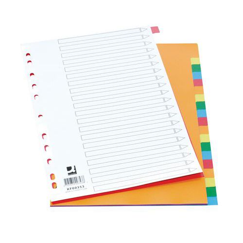 Przekładki Q-CONNECT, A4, 225x297mm, 20 kart, mix kolorów