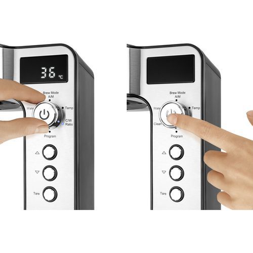 - Ekspres przelewowy daje możliwość ręcznego ustawiania temperatury wody (od 80°C do 98°C), jak również odpowiedniego dostosowania intensywności kawy.