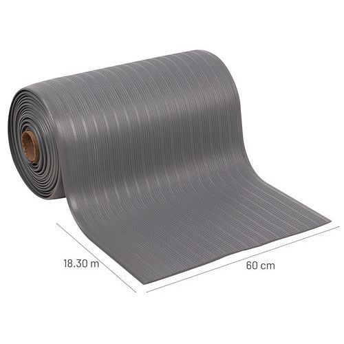 Przemysłowa mata przeciwzmęczeniowa Manutan Expert z rowkowaną powierzchnią, 1 830 x 60 cm, szara