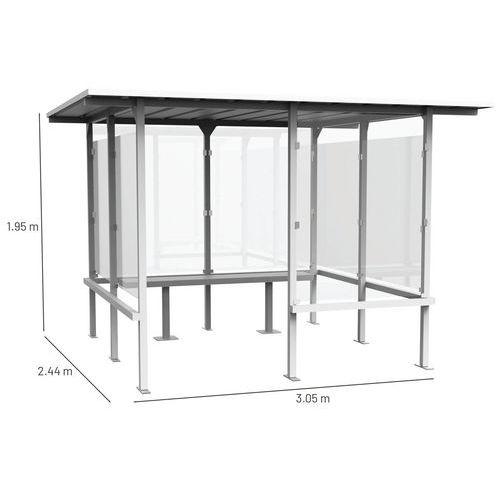 Przeszklone wiaty Manutan Expert Beaufortain z ławką, długość 3,05 m