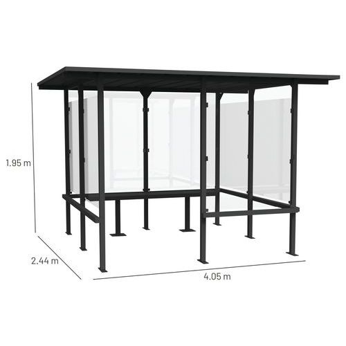 Przeszklone wiaty Manutan Expert Beaufortain z ławką, długość 4,05 m