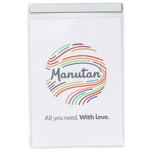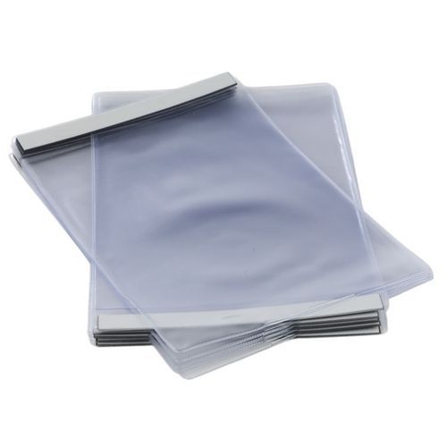 Kieszenie informacyjne wyposażono w górną krawędź magnetyczną, która umożliwia łatwe przesuwanie i mocowanie do regału.
