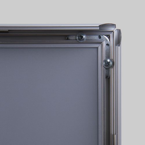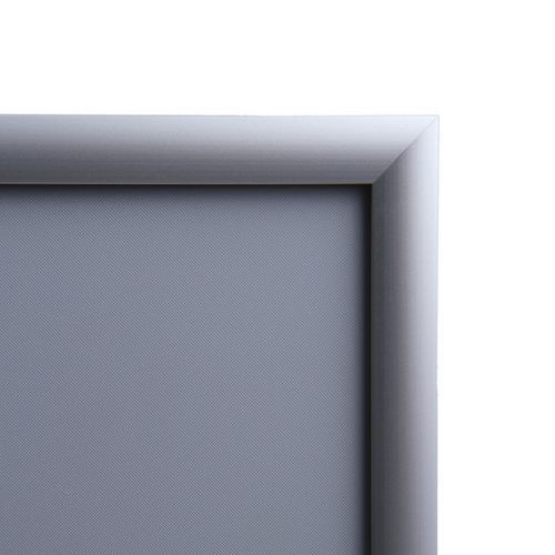 Ramy zatrzaskowe z profilem ramy 20 mm i ostrymi rogami, nadają się do prezentacji ulotek, fotografii, ofert specjalnych itp. Ramy zatrzaskowe są wykonane z anodowanego aluminium oraz folii antyrefleksyjnej z filtrem UV, która chroni przed promieniowaniem UV i ewentualnymi zarysowaniami. Lekkie aluminiowe ramy umożliwiają łatwą manipulację i zapewniają wysoką odporność. Ramy nie obciążają przestrzeni dzięki wykonaniu z cienkiego materiału.
