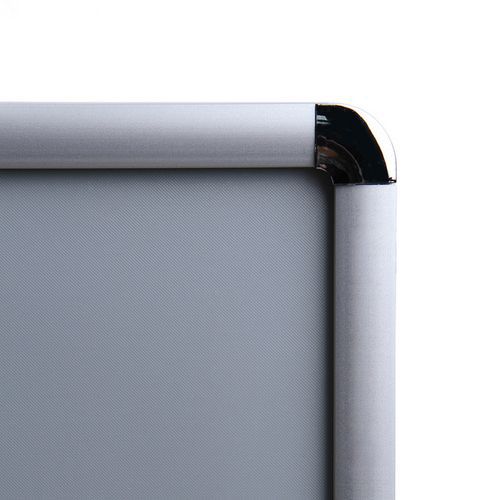 Ramy zatrzaskowe z profilem ramy 20 mm i zaokrąglonymi rogami, nadają się do prezentacji ulotek, fotografii, ofert specjalnych itp. Ramy zatrzaskowe są wykonane z anodowanego aluminium oraz folii antyrefleksyjnej z filtrem UV, która chroni przed promieniowaniem UV i ewentualnymi zarysowaniami. Lekkie aluminiowe ramy umożliwiają łatwą manipulację i zapewniają wysoką odporność. Ramy nie obciążają przestrzeni dzięki wykonaniu z cienkiego materiału.