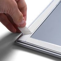 - Ramy zatrzaskowe są wykonane z aluminium oraz folii z filtrem UV, która chroni przed promieniowaniem UV i ewentualnymi zarysowaniami.