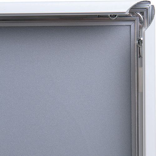 Ramy plakatowe nadają się do prezentacji ulotek, fotografii oraz ofert specjalnych. Łatwa i szybka wymiana plakatów przez odchylenie bocznych profili aluminiowych. Ściana tylna wykonana z tworzywa sztucznego w kolorze szarym, przednia folia antyodblaskowa UV. Możliwość umieszczenia w poziomie bądź pionie.
