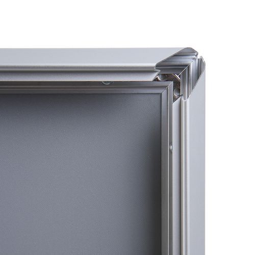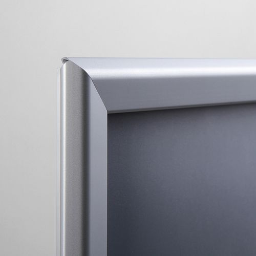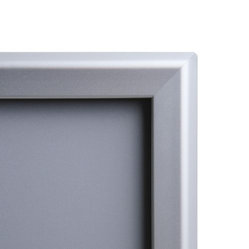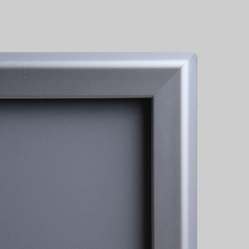 Ramy zatrzaskowe z profilem ramy 32 mm i ostrymi rogami, nadają się do prezentacji ulotek, fotografii, ofert specjalnych itp. Ramy zatrzaskowe są wykonane z anodowanego aluminium oraz folii antyrefleksyjnej z filtrem UV, która chroni przed promieniowaniem UV i ewentualnym porysowaniem. Lekkie aluminiowe ramy umożliwiają łatwą manipulację i zapewniają wysoką odporność. Ramy nie obciążają przestrzeni dzięki wykonaniu z cienkiego materiału.