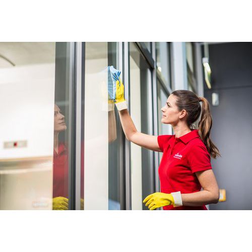 Wydajność: uzyskaj moc czyszczenia mikrofibry połączoną z trwałością. Dwie 5-litrowe butelki PET są poddawane recyklingowi w celu wyprodukowania jednego ręcznika r-MicroTuff Swift bez zmniejszania wydajności i trwałości czyszczenia. Wydajność: ta mikrofibra pochodząca z recyklingu zapewnia najlepsze w swojej klasie profesjonalne rezultaty czyszczenia, takie jak usuwanie do 99,99% bakterii koronawirusowych z powierzchni. Skuteczność czyszczenia jest gwarantowana nawet bez użycia środków czyszczących. Duma: Ekologiczna ściereczka Vileda Professional r-MicroTuff Swift otrzymała etykietę Nordic Swan, która podkreśla, że jest bezpieczna dla użytkowników i środowiska. Ściereczki z mikrofibry pochodzącej z recyklingu Vileda Professional czyszczą w mądrzejszy i bardziej ekologiczny sposób, zapewniając jednocześnie wartość dodaną dla Twoich klientów.