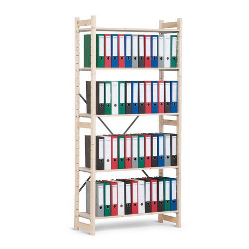 Regały drewniane, podstawowe, 209 x 97 x 30 - 50 cm, 5 półek, świerk