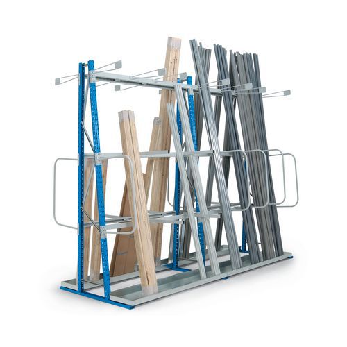 Regał pionowy w wersji jednostronnej lub dwustronnej, z możliwością poszerzenia elementu podstawowego o kolejny regał. Może być wykorzystywany do przechowywania długich profili oraz materiałów prętowych. Powierzchnia wykończona lakierem proszkowym w kolorach RAL 5015 i RAL 7035.
