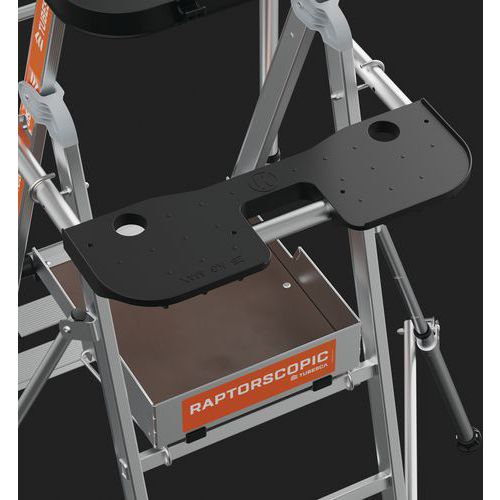 Regulowany podest aluminiowy Raptorscopic Tubesca-Comabi, dwie półki, 5 do 7 stopni