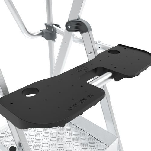 - Bardzo wygodny podest 590 x 400 mm z antypoślizgowego aluminium.
