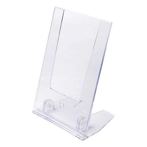 - Stojaki pulpitowe do prezentacji w kształcie litery L, z tworzywa sztucznego.