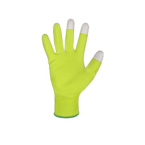 - Rękawiczki bezszwowe dzianez poliestru z cienką warstwą poliuretanu w dłoni i na palcach.