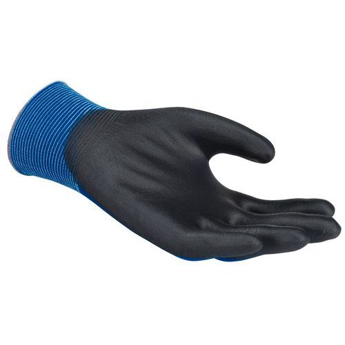 Rękawice częściowo powlekane poliuretanem, przeznaczone do lekkich prac w warunkach suchych lub lekko zatłuszczonych.
