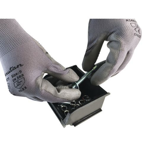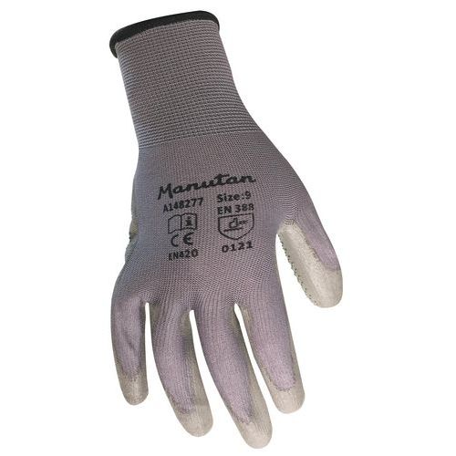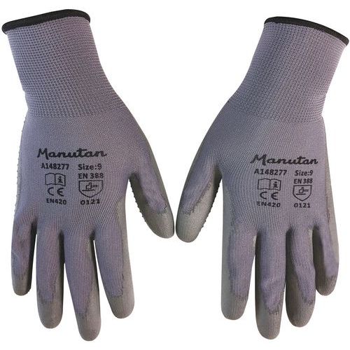 Rękawice nylonowe Manutan Expert nakrapiane częściowo powlekane poliuretanem, szare