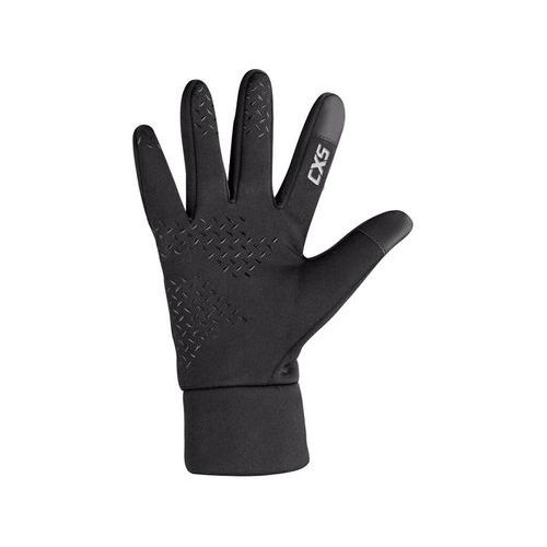 Zimowe rękawiczki UNISEX z polarową podszewką. Antypoślizgowe silikonowe aplikacje na dłoni i palcach. Materiał do obsługi ekranów dotykowych na kciuku i palcu wskazującym. Odblaskowe logo z tyłu. Luźno wszyty mankiet. Pakowane w blister.
