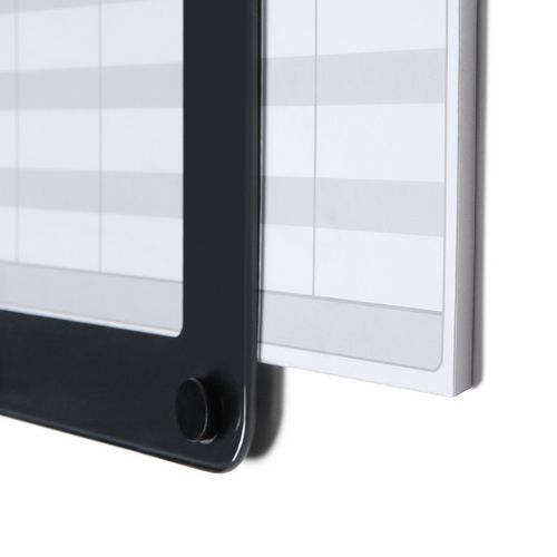 - Tygodniowa tablica do planowania, z powierzchnią magnetyczną i specjalnym wykonaniem zapewniającym podwyższoną widoczność.