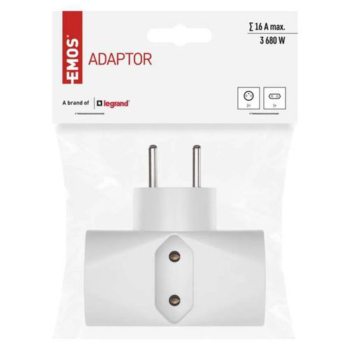 | Nazwa produktu | Rozgałęźnik 2 x okrągły + 1 x płaski, biały |