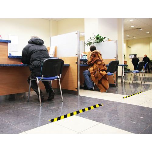 Taśma podłogowa usprawniająca zarządzanie kolejkami w recepcjach i kasach. Mocny, antypoślizgowy klej, który można łatwo nałożyć na każdą czystą, gładką powierzchnię.