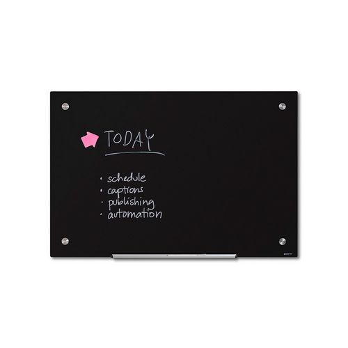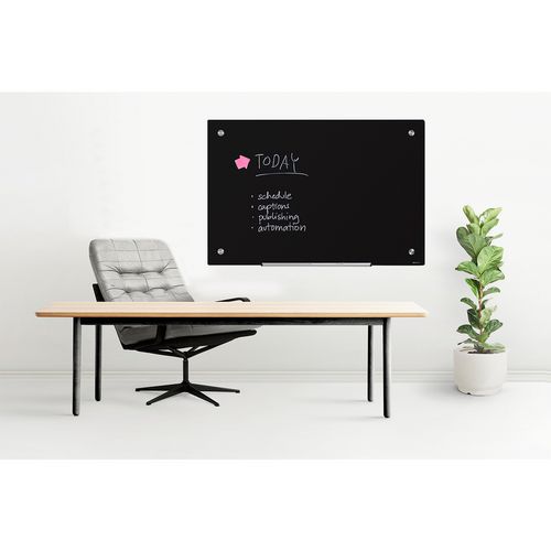- Czarna szklana tablica nada Twojemu przekazowi nowoczesny i stylowy wygląd.