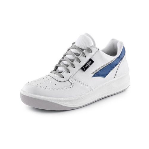 Białe obuwie sportowo-robocze Prestige z podeszwą antypoślizgową. rozmiar: 35 - 48 wersja: unisex materiał: cholewa — skóra, podszewka — materiał tekstylny, podeszwa — guma kolor: biały, niebieski wzór certyfikacja: EN ISO 20347 przepuszczalne, antypoślizgowe EN ISO 20347: Ta międzynarodowa norma określa podstawowe i dodatkowe (nieobowiązkowe) wymagania dotyczące obuwia roboczego, które nie jest narażane na zagrożenia mechaniczne (uderzenia i ściskanie).