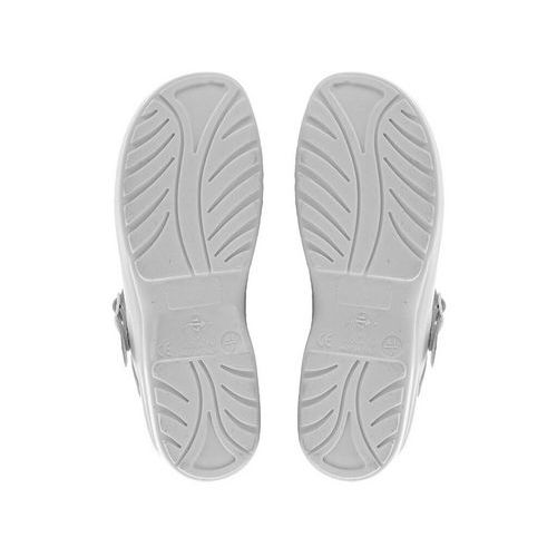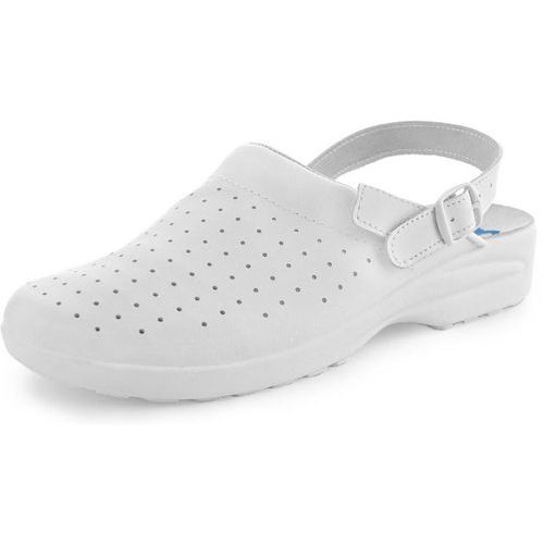 Obuwie medyczne wykonane w całości ze skóry, z regulowanym paskiem wokół pięty. EN ISO 20347: Ta międzynarodowa norma określa podstawowe i dodatkowe (nieobowiązkowe) wymagania dotyczące obuwia roboczego, które nie jest narażane na zagrożenia mechaniczne (uderzenia i ściskanie).