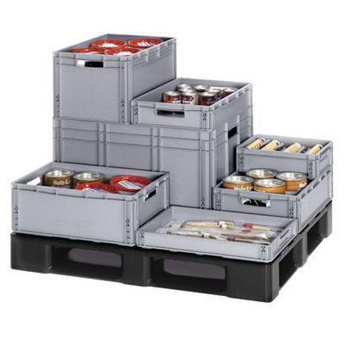 - Plastikowe pojemniki transportowe Euro mają proste ścianki i kompaktowe rozmiary ułatwiające układanie w stosy i magazynowanie.