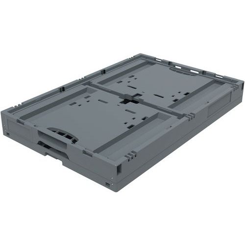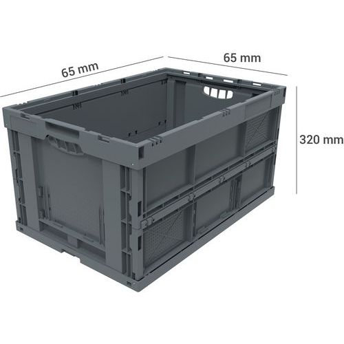 - Solidne składane skrzynki wykonane z polipropylenu pochodzącego z recyklingu, z ergonomicznymi, półotwartymi uchwytami.