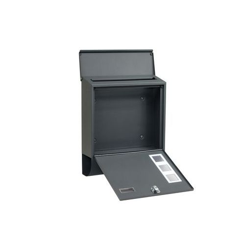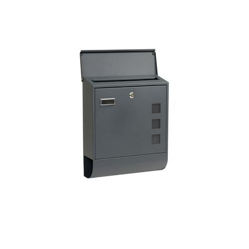 Skrzynka stalowa z okienkami z matowej pleksi umożliwiającymi częściowy wgląd do jej wnętrza oraz tubą na mate