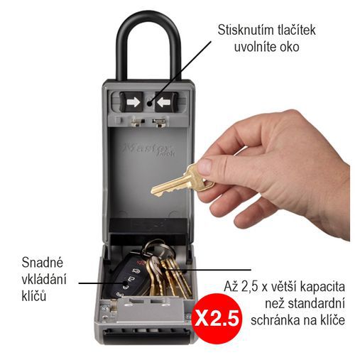 - Pojemność wewnętrzna skrzynki jest 2,5 raza większa niż w przypadku standardowych skrzynek na klucze.
