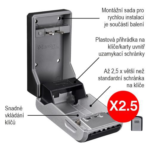 - Pojemność wewnętrzna skrzynki jest 2,5 raza większa niż w przypadku standardowych skrzynek na klucze.