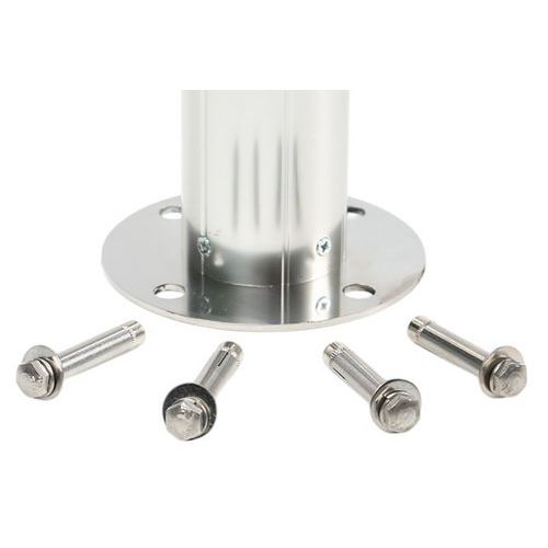 Słupek odgradzający z taśmą samozwijającą, przeznaczony do wydzielania dostępów, nawigacji osób itp. Słupek służy do mocowania w ziemi. kolor taśmy: czarny/żółty, biały/czerwony kolor słupka: srebrny, czerwony, żółty długość pasa: 2 m szerokość pasa: 4,8 cm wysokość słupka: 90 cm średnica podstawy: 12,5 cm średnica profilu: 6,35 cm typ mocowania: w podłożu materiał: stal masa: 1,5 kg mechanizm samozwijania