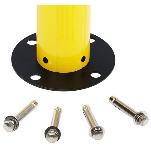 Słupek odgradzający z taśmą samozwijającą, przeznaczony do wydzielania dostępów, nawigacji osób itp. Słupek służy do mocowania w ziemi. kolor taśmy: czarny/żółty, biały/czerwony kolor słupka: srebrny, czerwony, żółty długość pasa: 2 m szerokość pasa: 4,8 cm wysokość słupka: 90 cm średnica podstawy: 12,5 cm średnica profilu: 6,35 cm typ mocowania: w podłożu materiał: stal masa: 1,5 kg mechanizm samozwijania
