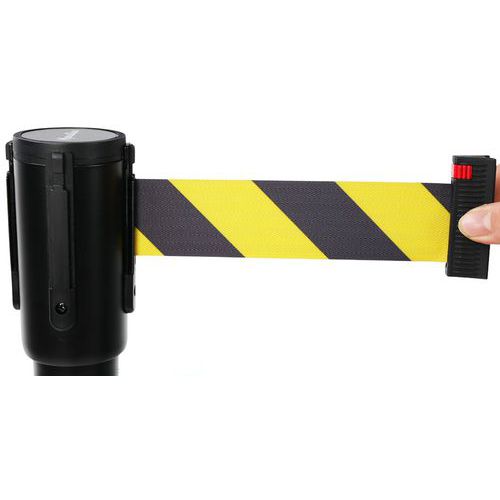 Słupki odgradzający z wysuwaną 2-metrową taśmą elastyczną są idealne do wytyczania dostępu, tymczasowej nawigacji osób, blokowania wejścia itp.