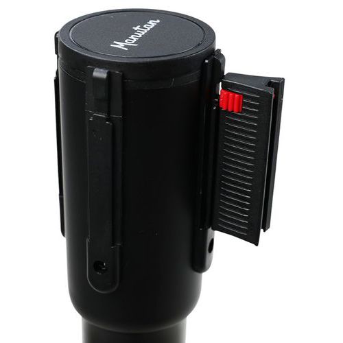 Słupek odgradzający z taśmą Manutan Expert, 2 m, czarny Słupek odgradzający z taśmą Manutan Expert, 2 m, czarny