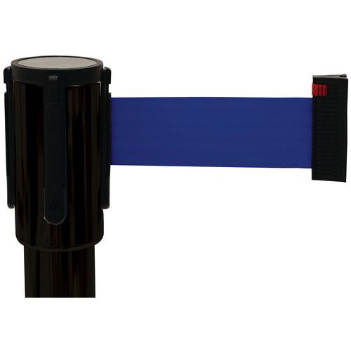 Słupki odgradzające z taśmą Manutan Expert Black, podstawa z kółkami, 2 m